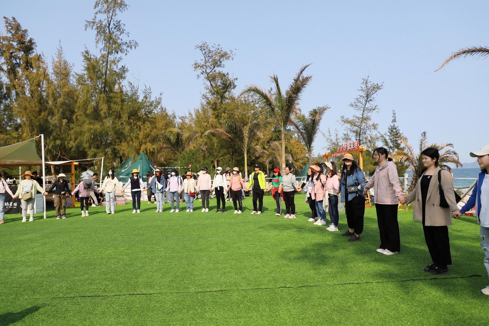 白帐篷,绿草地,黄沙滩,蓝海岸,海上田园露营地迎来龙华投控魅力女职工们。伴着乐队美妙的歌声和浪花峰涌的静谧之声,大家在这里三三两两围坐话家常,畅聊悠闲时光,褪去平日里伏案工作的疲惫和操劳,尽享春日暖暖的阳光,远望碧波万顷的海面,粼粼波光之中泛着一两只小船,沙滩边清透的海水中散落着形状各异的贝壳和迷你小螃蟹。女职工们安静而自由地享受着来自大自然的疗愈,感受生活的美好与无限希冀。