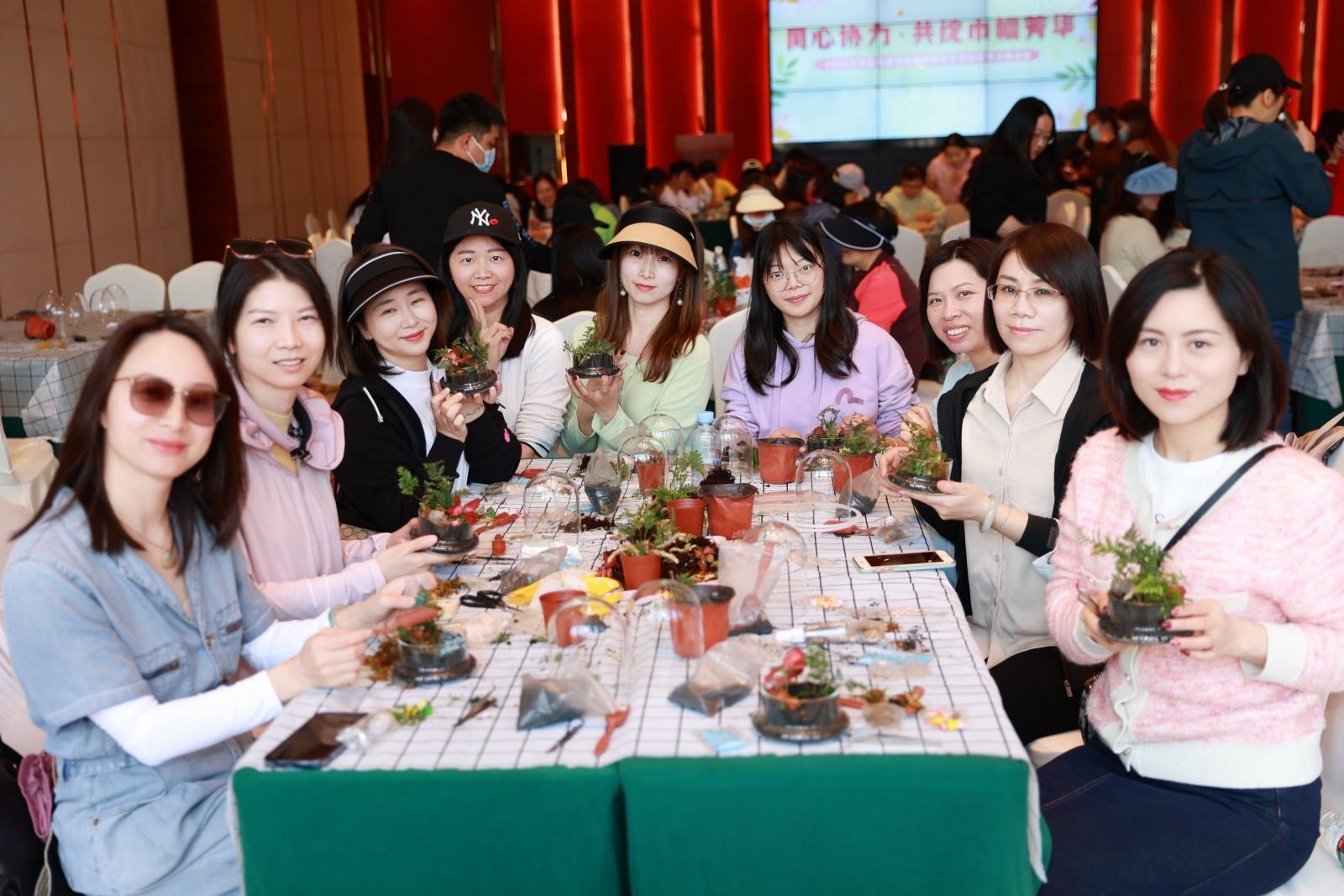 此站手工互动的内容包括植物微景观制作和永生花DIY。进入布置温馨的活动大厅,在专业园林师、美术老师的讲解和指导下,一些女职工手持小工具,变身巧手花匠,饶有趣味地剖土、栽种、铺石、装饰,打造各具特色的“纯手工盆景”,另一些女职工聚精会神、全心全意,镊子、胶水、水彩颜料、干花瓣等齐上阵,制作美丽而生动的永生花装饰画……经过近1小时的制作,一盆盆可爱的多肉“指尖森林”和一幅幅精美的永生花装饰画就呈现在大家面前。活跃的氛围,探知的兴趣,巧妙的构思,精美的设计,通过动手设计、创意发挥,锻炼了大家的动手能力,陶冶了良好情操。
