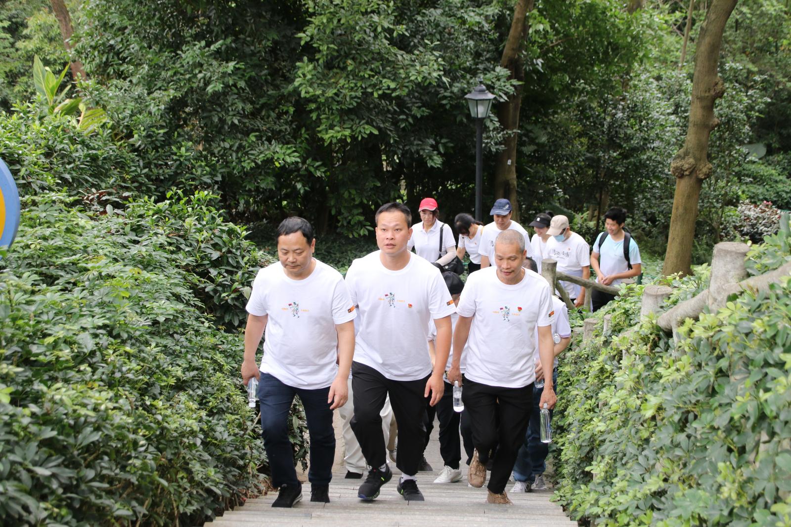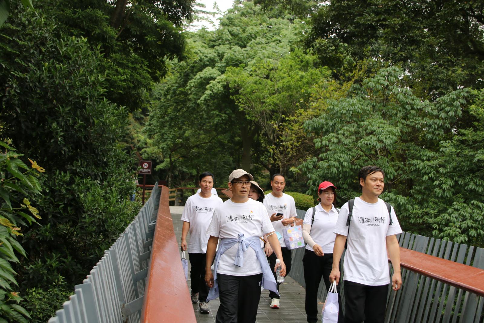 随后,健康绿道徒步行正式开始,活动成员在有序领取了内含饮用水、小零食、新鲜水果与遮阳伞等物品的精美小礼品后,斗志昂扬、脚步铿锵地向着山中出发。此次徒步是沿着深圳环城绿道,途径观湖亭、龙溪桥、半月廊、卧龙遗蛋、揽胜台等景观,最后爬上近100层石阶到达小阳台山顶——羊台叠翠景观地,全程往返约7公里,预计用时约3个小时。