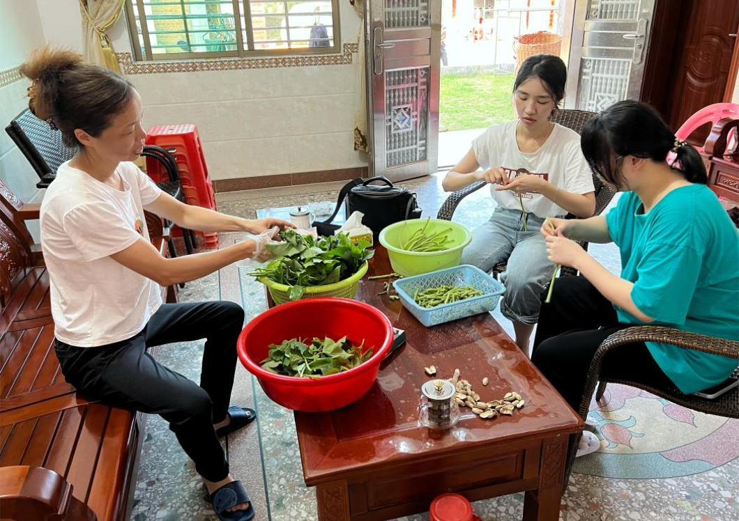 在学习、劳动高质量完成的同时,生活文娱体验也做到了丰富而充实。学员们通过与农户同吃、同住,一起做农家饭,擦桌子、刷锅洗碗,体验乡村特色水果与客家美食,与农户谈心拉家常,与村干部和群众联谊唱歌......丰富多彩的农家休闲活动使得此次淬炼实践更接地气、更有意义。