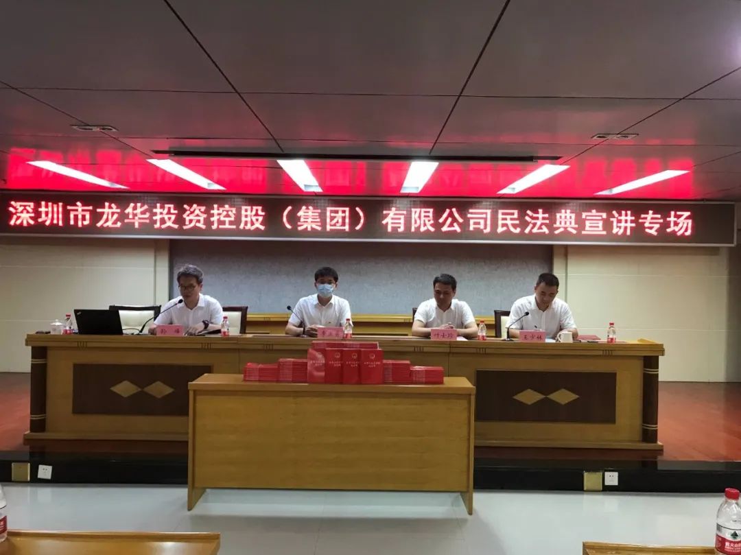 本场民法典“五进”宣讲会是本次龙华区“依法治区 与法同行”活动的第24个专场。集团总经理李正勇同志、副总经理王少林同志代表公司参加赠书仪式。
