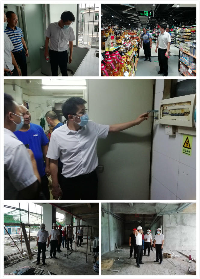 继纲同志现场检查园区内部分商铺和超市消防设备、充电设备、燃气等重点区域。