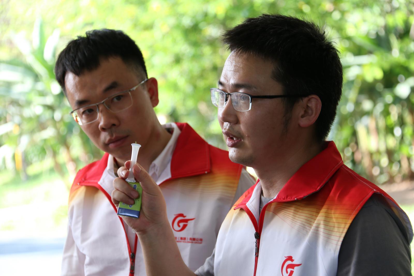 志愿服务队还请来了深圳市建筑科学研究院股份有限公司4名工作人员,在观澜河干流取水进行水质简易检测(PH、COD、氨氮和总磷指标),对护河巡河志愿服务队现场培训,增强志愿者河流水质基础知识。