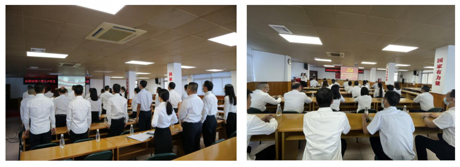 在观看过程中,广大党员同志们聚精会神、神情庄重,与主会场同步起立默哀、合唱国歌后,大家认真聆听了习近平代表十九届中央委员会向大会所作的报告。习近平指出,从现在起,中国共产党的中心任务就是团结带领全国各族人民全面建成社会主义现代化强国、实现第二个百年奋斗目标,以中国式现代化全面推进中华民族伟大复兴。中国共产党第二十次全国代表大会,是在全党全国各族人民迈上全面建设社会主义现代化国家新征程、向第二个百年奋斗目标进军的关键时刻召开的一次十分重要的大会。大会的主题是:高举中国特色社会主义伟大旗帜,全面贯彻新时代中国特色社会主义思想,弘扬伟大建党精神,自信自强、守正创新,踔厉奋发、勇毅前行,为全面建设社会主义现代化国家、全面推进中华民族伟大复兴而团结奋斗。习近平总书记高屋建瓴、全面详实的报告让全体参会人员豪情满怀、深受鼓舞,随着习总书记报告的结束,大家集体起立、激动鼓掌,观看现场爆发出热烈的掌声。