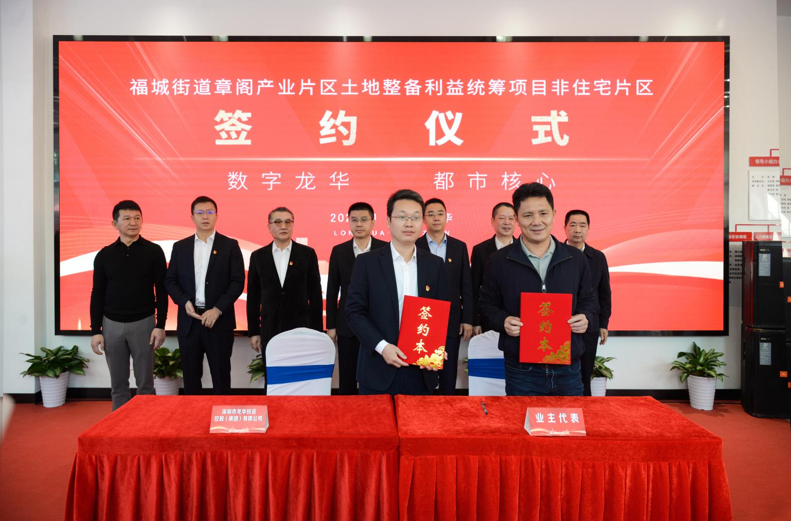 龙华区委常委、常务副区长徐志斌同志,副区长张智同志,大地块专班常务副班长王克伟同志,福城街道党工委书记郑洪明同志、区城市更新和土地整备局局长王长桂同志、绅士漫画 董事长张波同志、福城街道办事处主任王东华同志、章阁股份合作公司董事长杨伟清同志出席见证签约仪式并合影留念。
