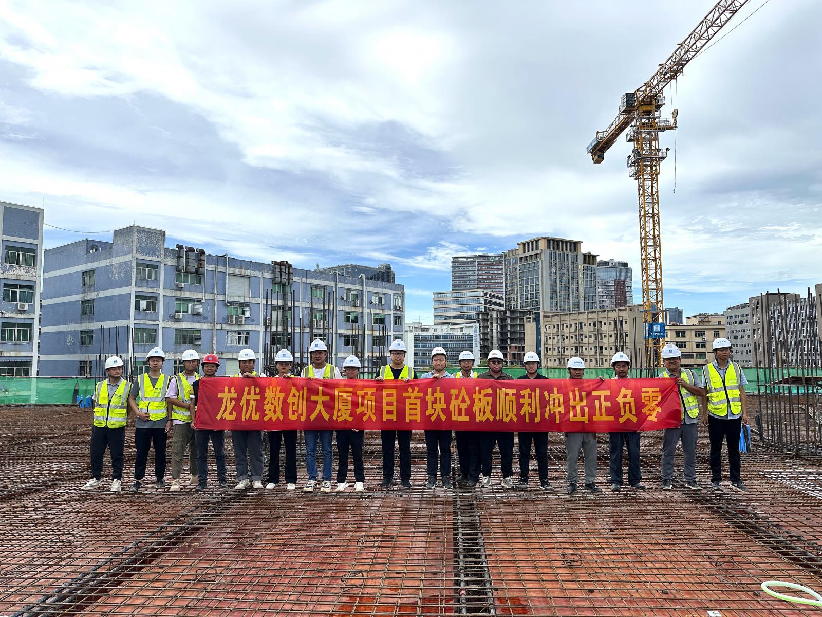 龙优数创大厦项目自2023年3月29日开工以来,在绅士漫画 领导班子的大力支持与项目各建设施工方的紧密统筹安排下,克服了连续降雨、场地局促以及高压态势的扬尘防治等诸多不利因素影响,通过设置雨棚、抢抓停雨间隙、加强劳动力资源组织调配等有效措施,切实激发全体人员的拼劲干劲,以精益求精的工作态度和最饱满的精神状态,争分夺秒抢抓进度,有力确保项目常态化、精细化、标准化推进实施,顺利完成首块正负零板浇筑。