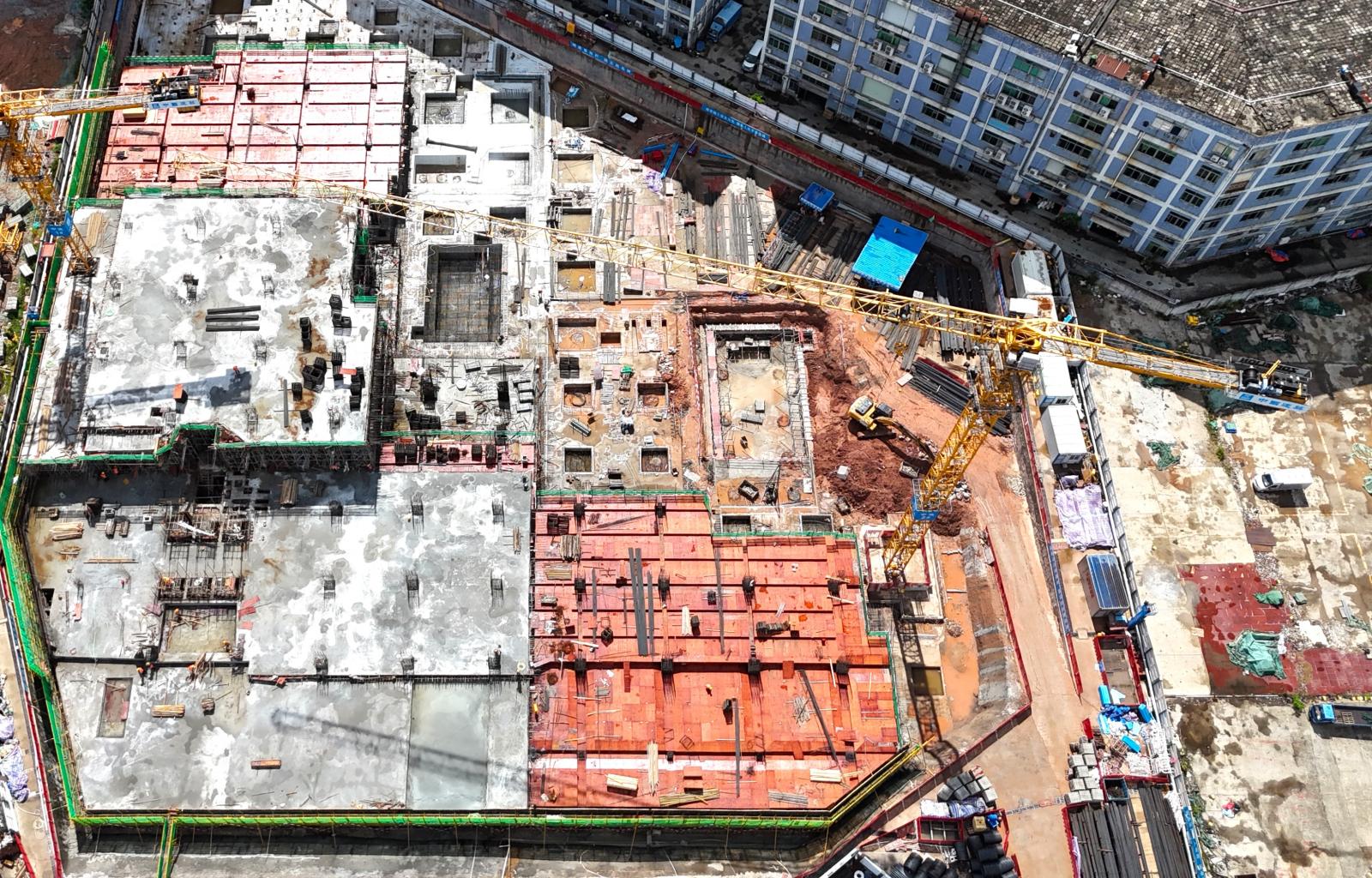 目前,龙优数创大厦项目约有200名工人开展地下室主体结构施工作业,已完成土方工程开挖和基坑支护工程,正在进行地下室主体结构施工,随着首个板块冲出“正负零”,其他板块将紧随其后加紧施工,力争今年9月底实现全面冲出“正负零”目标。