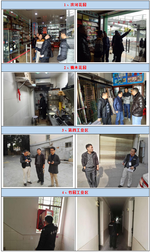 本阶段复查了滨河花园、楠木花园、第四工业区、竹园工业区等4家园区(物业)共计67项隐患,已整改35项,整改率52.24%,具体情况如下: