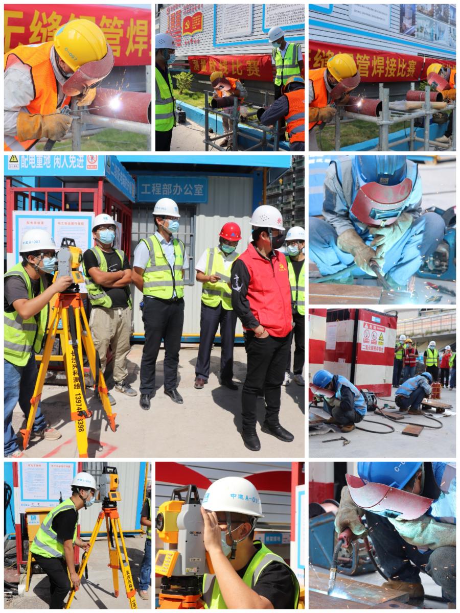 随后,质量比武活动正式开始,比赛根据现阶段主要施工工序分为钢筋工程组、型钢焊接组、管道焊接组和测量组四个小组,各小组成员各显神通,大展身手,以娴熟的技艺应对严格的竞赛要求,各组之间你追我赶、精益求精,赛况激烈紧张而精彩。
