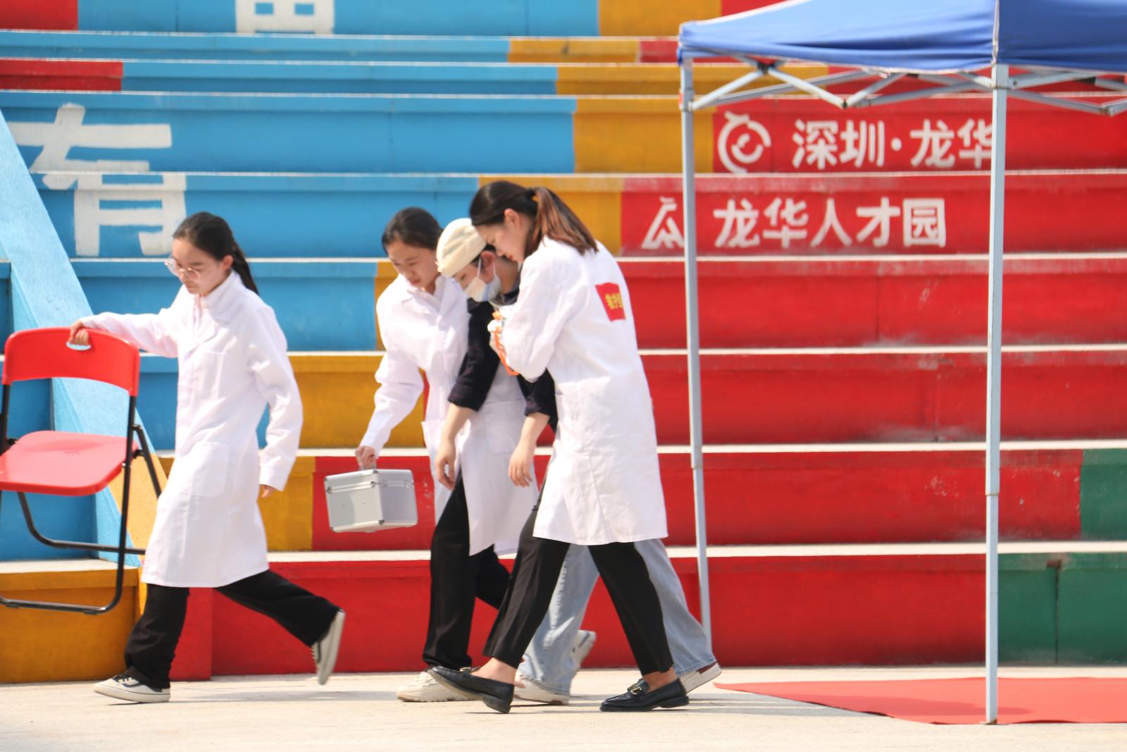 演练活动正式开始。办公室电脑长期超负荷运载导致发生火灾,龙华人才园消防控制室值班人员及时发现火情并报告单位领导,并迅速拨打119火警电话,接到报告后,单位领导立即启动事故应急预案,通讯组、抢险组、灭火组、疏散组、救护组、警戒组等多个应急小组火速出动实施救援,组织被困人员有序撤离火灾区域。119指挥中心接警后,立即将火情信息通报至观澜消防救援站,观澜消防救援站迅速调度人才园附近的新田社区消防分队,共同赶往火灾现场,社区工作站有关领导也第一时间来到现场进行指挥,确保救援高效有效完成。